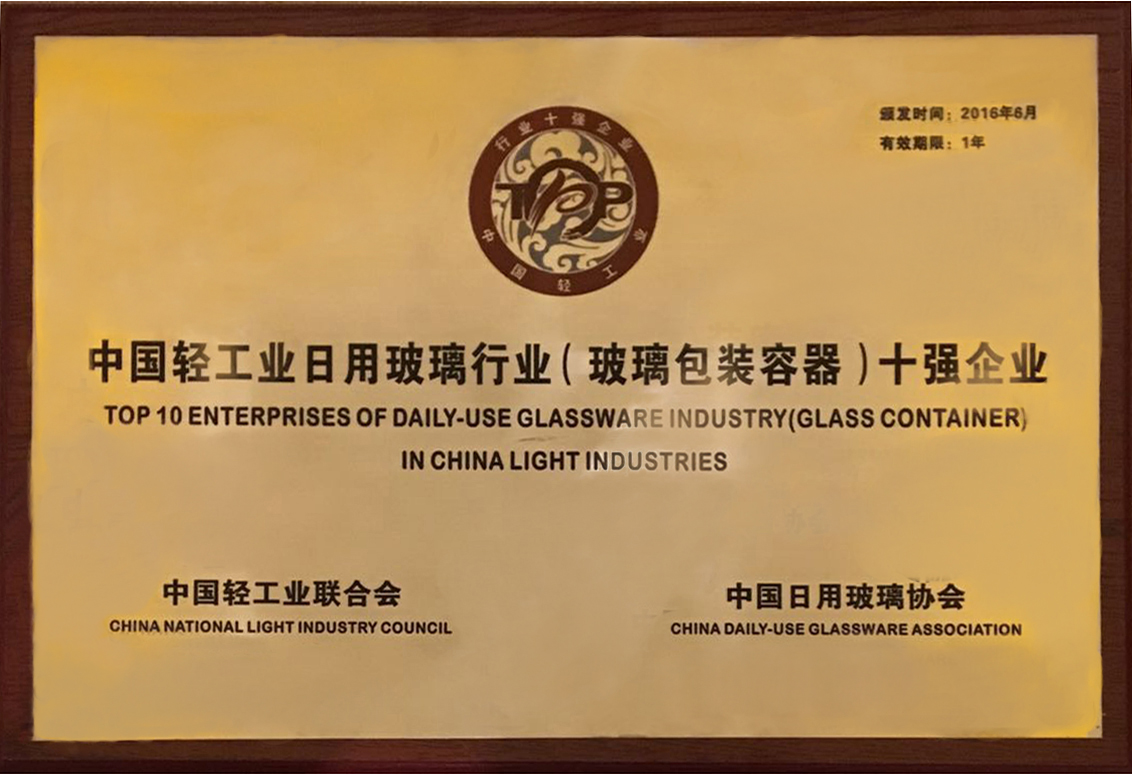 集團(tuán)公司獲日用玻璃十強(qiáng)企業(yè)殊榮