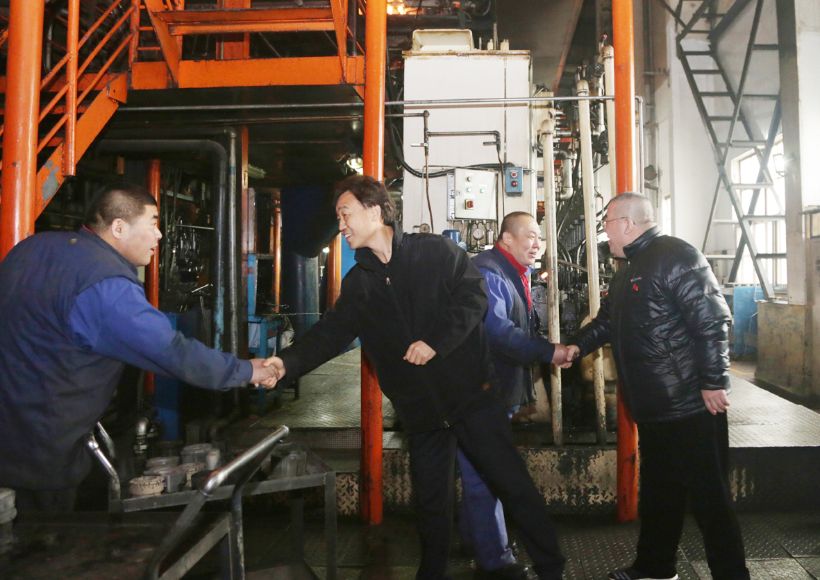 在六零八廠鍋爐房、配電室,在鑫企旺中心幸福、紅橋?qū)懽謽呛褪程冒?,集團(tuán)公司領(lǐng)導(dǎo)一一與大家握手寒暄,將溫暖、關(guān)懷與祝福送給一絲不茍地堅(jiān)守崗位的職工。